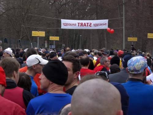 Großer Andrang am Morgen. Um nicht im Stau stehen zu müssen, parken Martin und ich ca. 500 Meter vom Start entfernt auf dem Parkplatz des