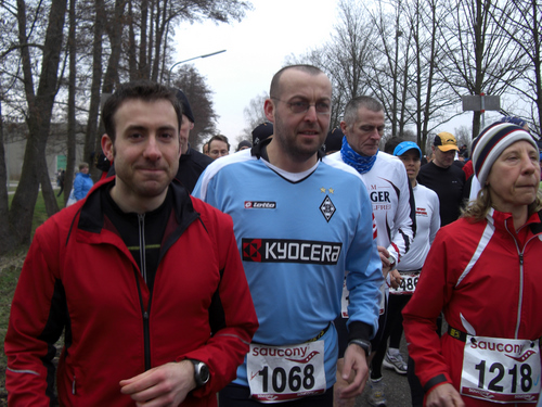 Um 10 Uhr fällt der Startschuss und Martin (links), Marco (rechts) und ich (nein nicht ganz rechts, sondern hinter dem Fotoapparat) setzen uns