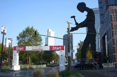 Vom ersten Moment an war mir der Frankfurt Marathon sympathisch. Denn wo gibt es das sonst, dass der Mann mit dem Hammer mit Sicherheit erst