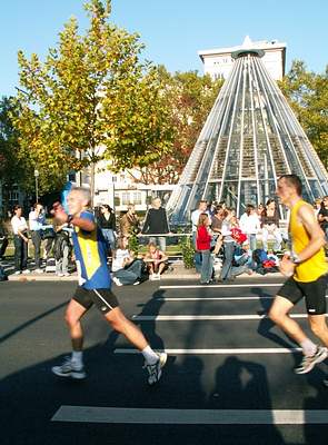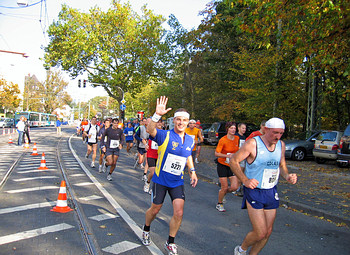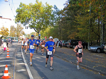 Außerdem lief an diesem Tag noch mein treuer Sonntagstrainingspartner Dieter (der Dritte) mit, der in diesem Jahr schon zum dritten Mal in Frankfurt antrat. |