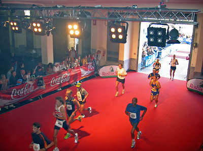 ... wo ich zum ersten Mal einen Marathon mit Discobeleuchtung auf einem roten Teppich beendete. Allein der Einlauf in die Halle war die