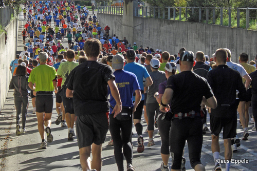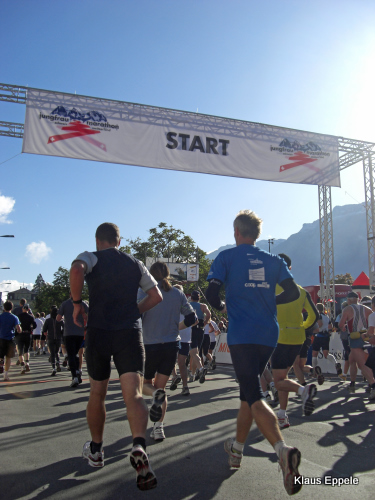 ... wo Punkt 9 Uhr der Startschuss fällt. Ich hefte mich an die Fersen der 5:30 Zielläuferin und nehme mir vor, so lange als möglich an ihr
