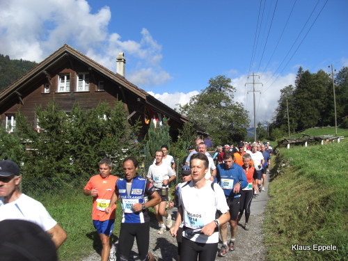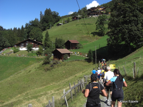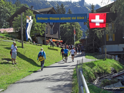 ... erreiche ich nach 3:20:55 Stunden Wengen und die 30 km Marke. In den letzten 45 Minuten bin ich knapp 500 Meter nach oben gekraxelt.