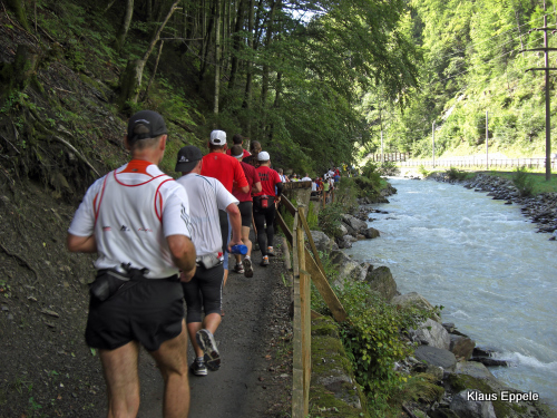 Aber als ich kurz vor den Trümmelbachfällen den gelben Luftballon des 5:30 Pace Maker näherkommen sehe, ... |