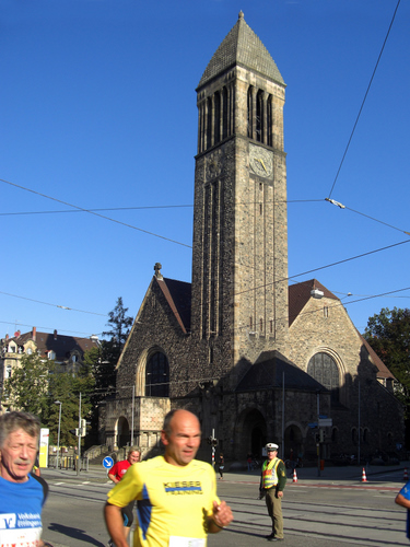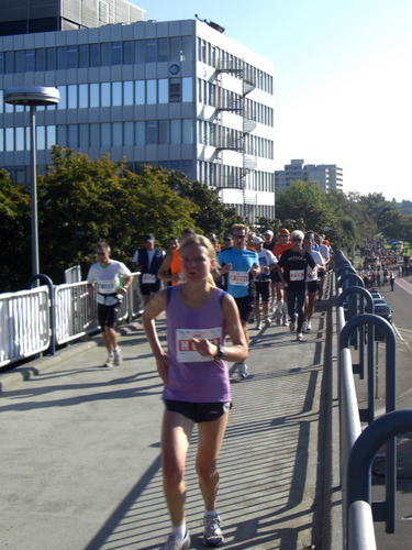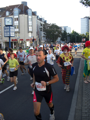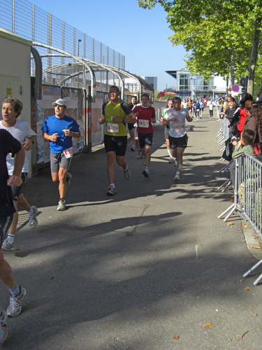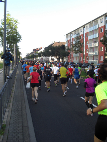 Dann erreichen wir wie jedes Jahr die Klotze und die Marathonweiche. Ich biege rechts ab Richtung Ziel ... |