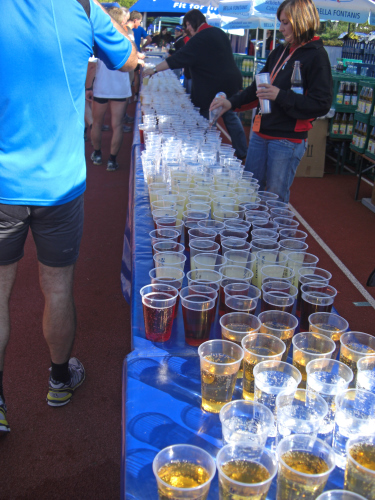 Ich habe zwar keinen Durst, aber bei der nächsten Verpflegungsstation greife ich mir vorsorglich doch wieder einen Becher Wasser. |