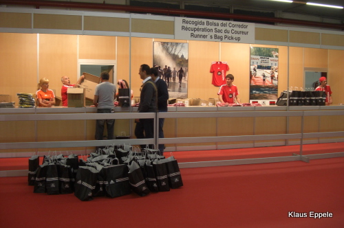 ... und wir kommen zur “Goody-Bag”-Ausgabe, wo jeder Teilnehmer eine Tragetasche mit diversem Kleinkram, einen gelben Marathon-Rucksack und