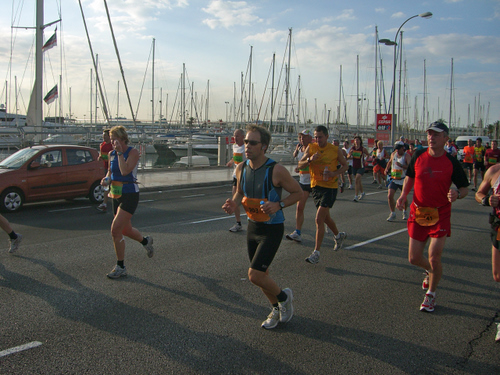 nach Abgasen riecht. Ein Kilometer weiter kommt die Marathonweiche. Die Halbmarathonis biegen hier rechts ab und laufen an der Kathedrale vorbei zum Ziel. Die Marathonis bewegen sich nach Osten Richtung
