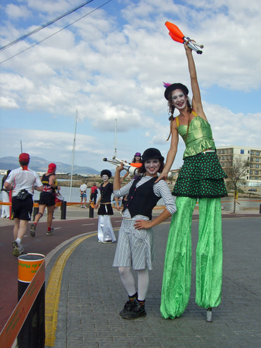 Weiter geht es durch die Stadt bis zum Placa d´Espanya bei km 18,5 wo wir von Samba-Tänzerinnen und einigen