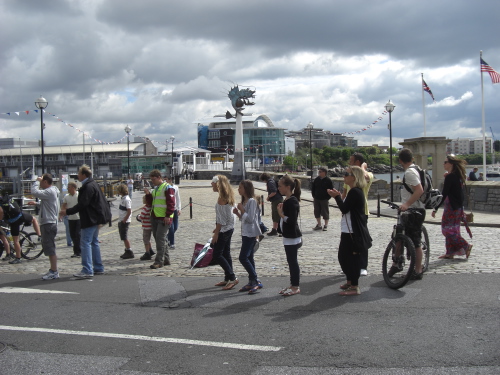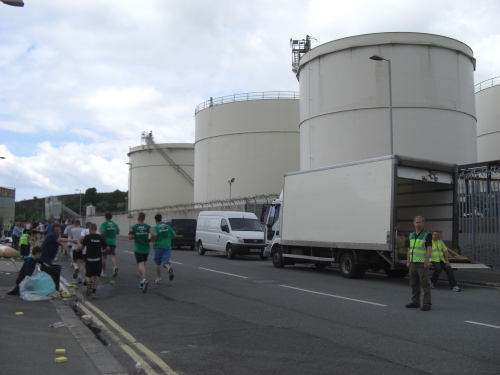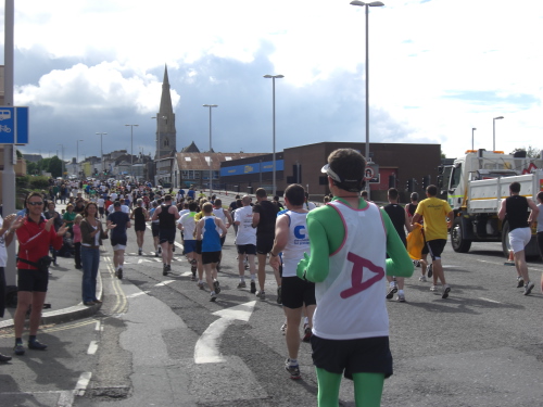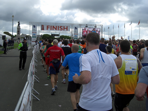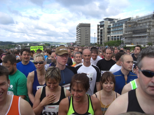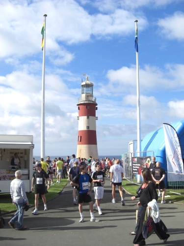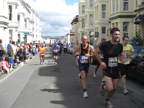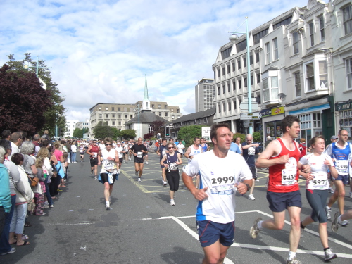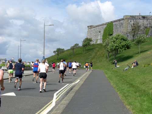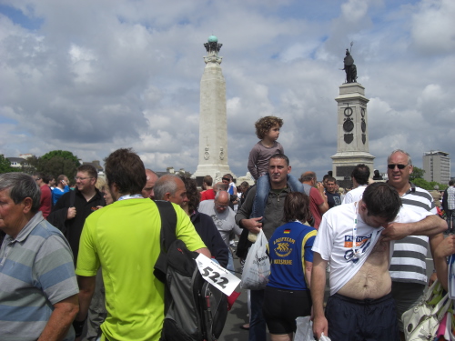 Wir erreichen The Hoe, wo viele Zuschauer auf ihnen bekannte Läufer warten. |