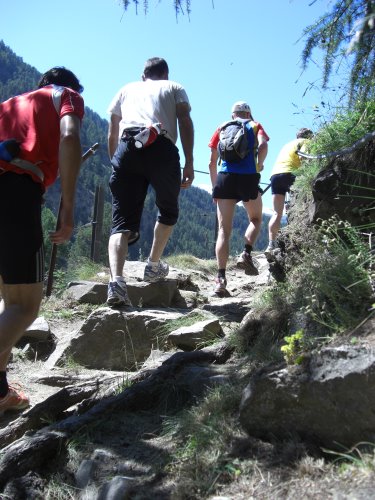 ... und hier - zwischen Täsch und Zermatt - wird der Weg so, wie ich das bei Bergläufen liebe: Eng, felsig, unwegsam, ansteigend und ...