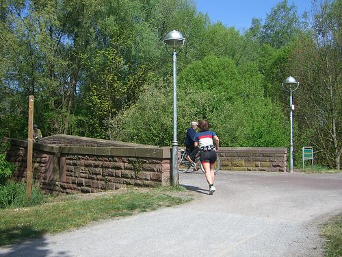 Von der Bergwaldsiedlung aus laufen wir bis zum Oberwaldstadion wie unter “Oberwaldrunde” beschrieben. Danach gehts für etwa drei Kilometer auf die Baden-Marathon-Strecke bis wir zum Rüppurrer