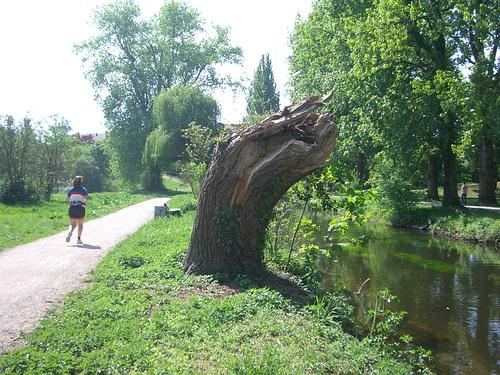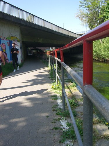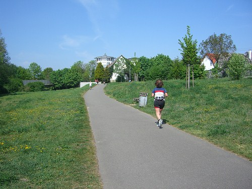Wenn ein langer Lauf auf dem Trainingsplan steht und es noch nicht zu warm ist, laufen wir gerne an der Alb entlang Richtung Rheinhafenbad.