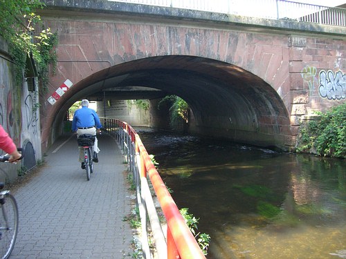 Nach der Eisenbahnbrücke biegen wir vor der Alb links ab, ... |
