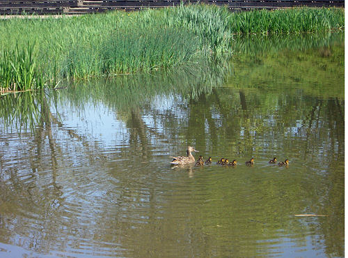 Am See halten wir nochmal kurz an und schauen einer Entenfamilie zu. |
