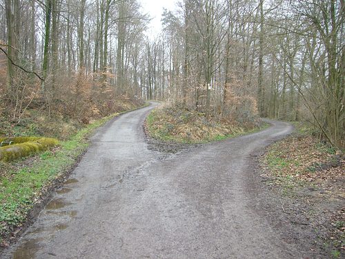 Hier zweigt sich der Weg und wir müssen links abbiegen in den Streuwiesenweg. |