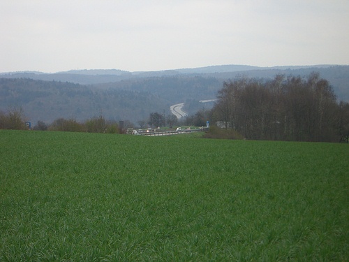 Wir verlassen den Herrmannsgrund auf der Höhe von Obermutschelbach, überqueren wieder die K3562 und laufen durch die Felder zur A8. |
