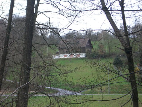Wir überqueren die L563 und biegen ab zum Naturfreundehaus Kleinsteinbach. Dies ist der tiefstgelegenste Punkt dieser Laufrunde. Ab jetzt geht