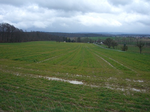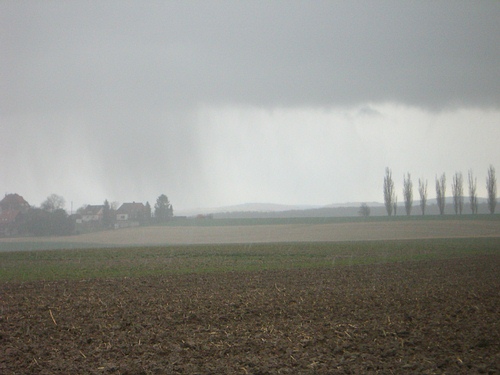 ... und kommen auf die Felder, die heute pitschenass sind vom vielen Regen. |