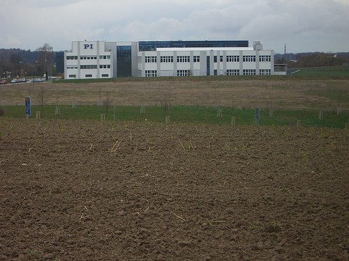 Rechts sehen wir das PI-Gebäude. Wir biegen links ab ... |